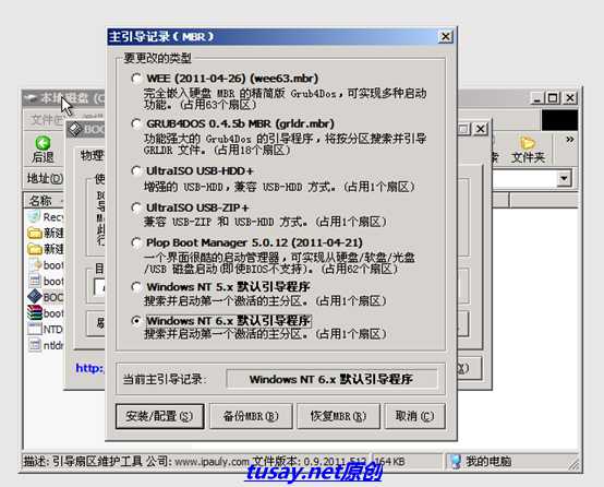 如果你的系统时win7/8/vista ,那么主引导分区选择windows nt6.x引导程序,相应分区引导程序选择bootmgr引导程序。